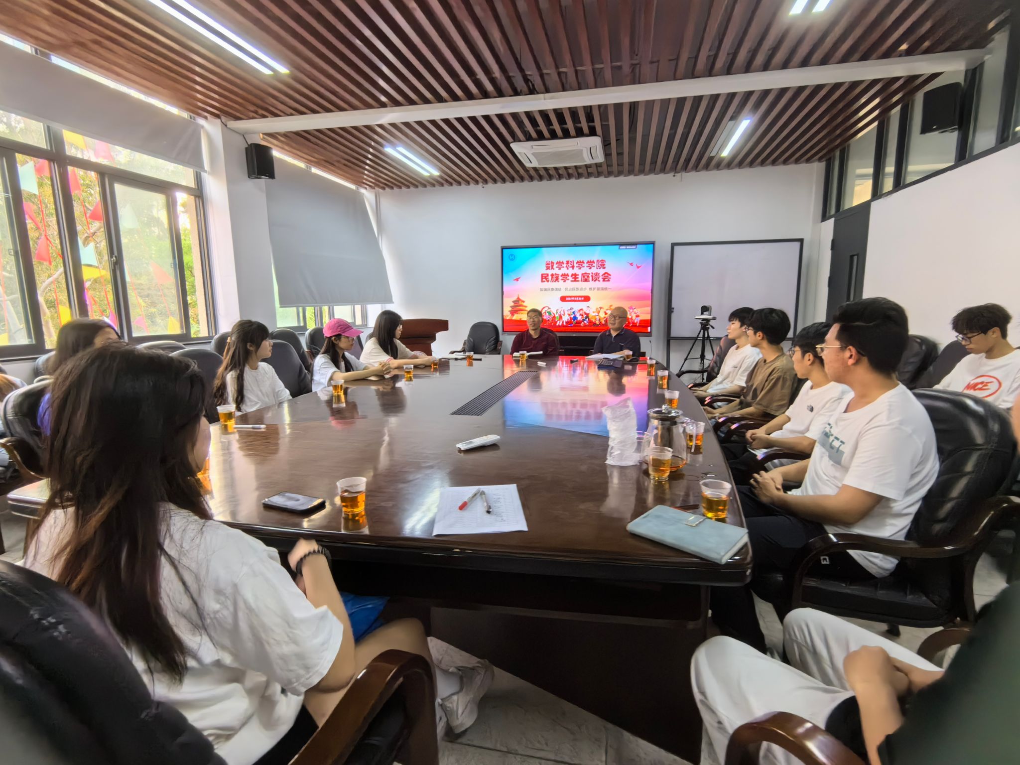 在数学楼311会议室举办了本学期第一场的“院长、书记下午茶”活动,本期主题聚焦铸牢中华民族共同体意识开展民族学生座谈。学院院长陈行堤、党委书记陈英文以及全院25名少数民族学生参与座谈,团委书记王雷担任主持。