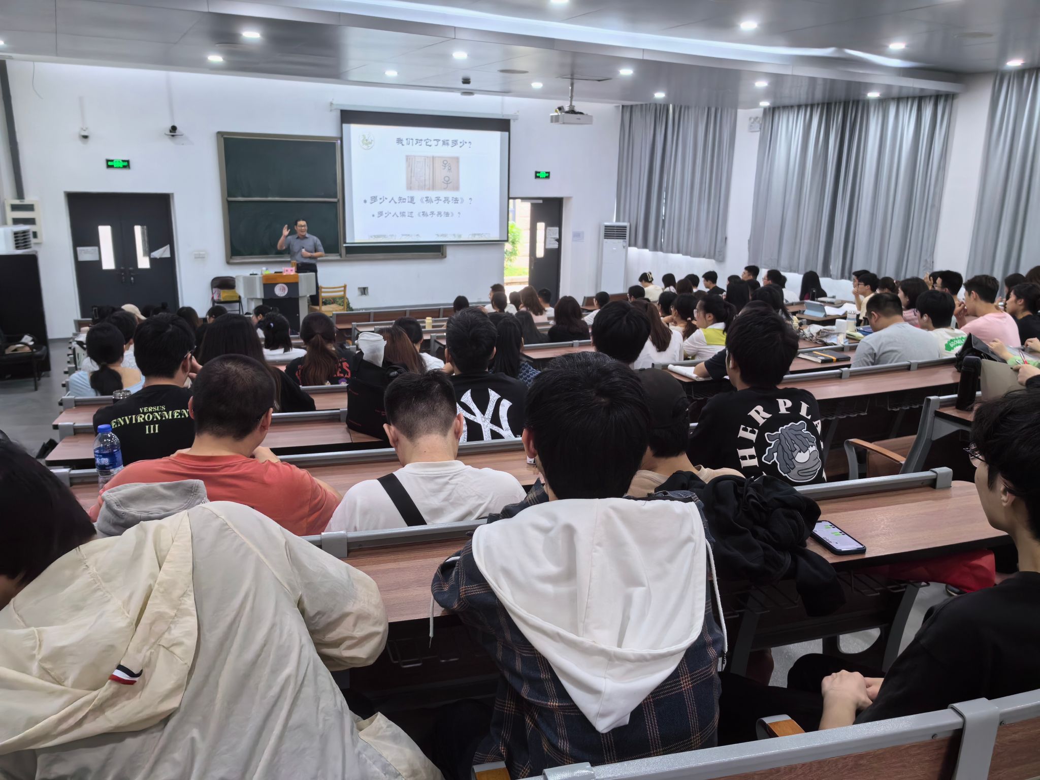 4月23日下午,在数学楼梯形教室“中华文化讲堂”如期开讲,我校大学英语部副主任郭琦受邀来到“中华文化讲堂”,和到场的近200名师生一起品读《孙子兵法》,感悟从“用兵之法”到“处世之道”的先贤智慧。