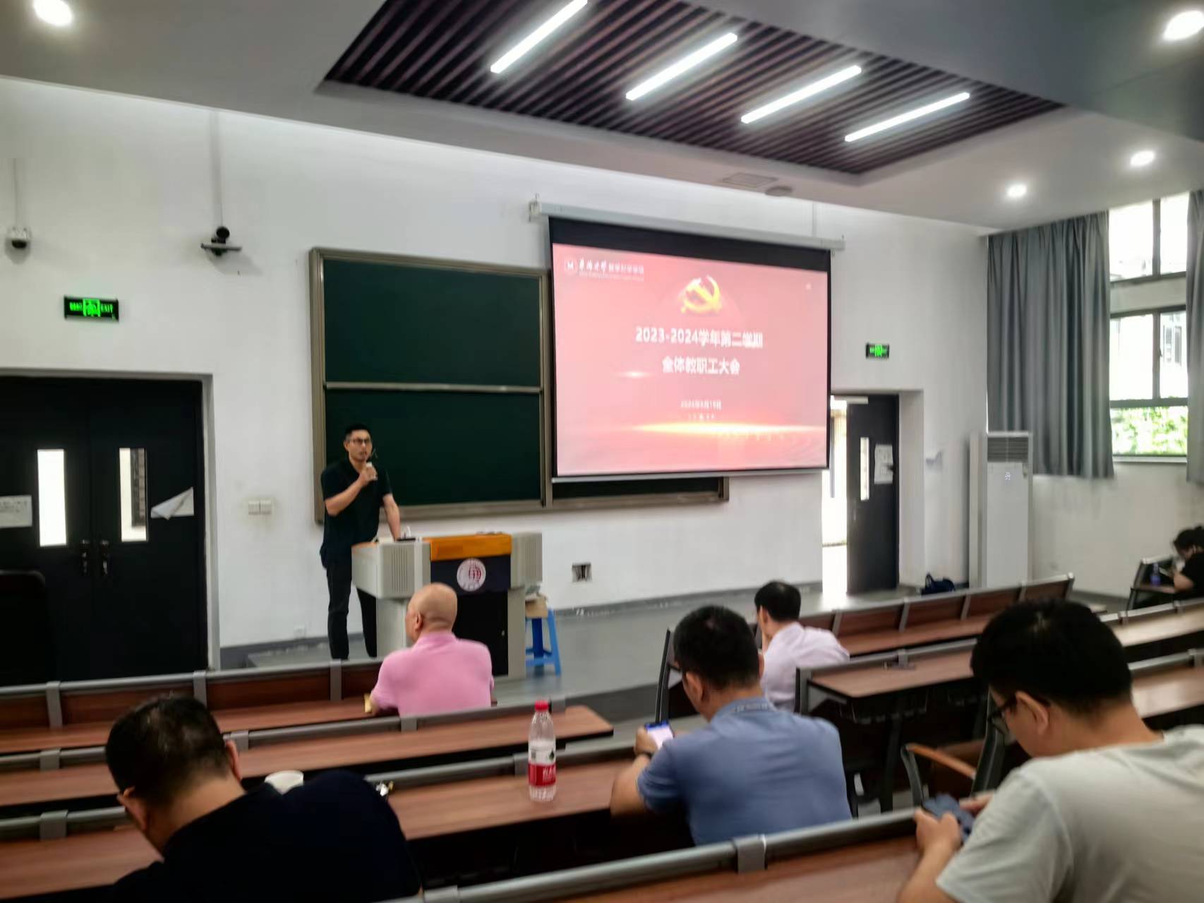 随后,陈行堤院长代表学院领导班子做总结汇报。他详细讲述了学院本届领导班子在学校党委和行政的关心和指导下,聚焦立德树人,增强政治自觉,全面贯彻党的教育方针;加强学科建设,稳步提升科研实力;深化教育教学改革,人才培养成果丰硕;全面从严治党,落实新时代党的建设总要求;夯实安全稳定工作,为高质量发展保驾护航。四年来,全力冲击一级博士点申报工作,目前已经在国家评审阶段,这是全院教职工一起努力的结果。
