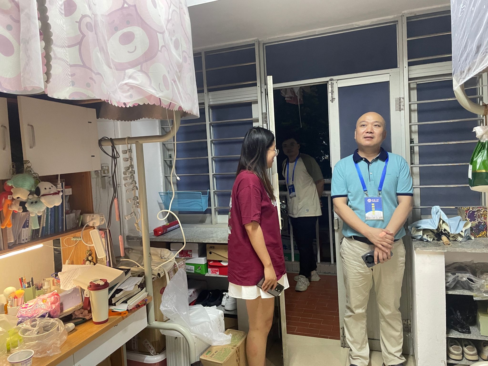 陈英文书记携同学院辅导员,逐一探访了新调整的学生宿舍。每到一处,陈书记都与学生亲切交谈,询问他们是否对新宿舍环境满意、是否遇到了生活上的不便等。学生们纷纷表示,对此次宿舍调整工作表示感谢,并对新宿舍的设施、环境给予了高度评价。他们提到,新宿舍不仅空间更加宽敞明亮,而且室友间的相处也十分融洽,大家共同营造了一个温馨、和谐的生活氛围。
