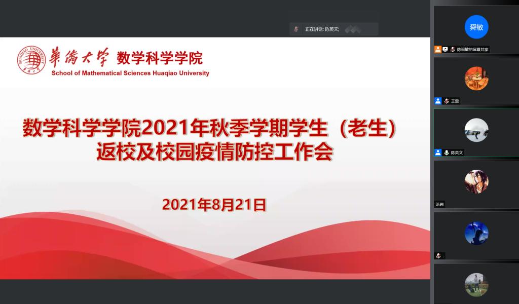 严格按照上级要求精心部署开学工作,8月21日下午14:30,学院通过线上会议向学院全体学生传达关于开学返校相关流程以及校园疫情防控工作,学院党委书记陈英文,团委书记王雷以及辅导员陈舜敏参会。
