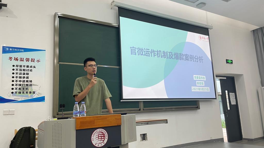 党委宣传部蔡君韬主讲,学院辅导员陈舜敏主持,成人社区全体学生参加。
