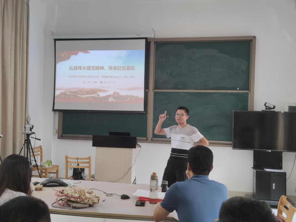 泉州教工第二党支部在数学楼313开展“弘扬伟大建党精神,传承红色基因”的党课活动。支部书记翁智峰主持会议。