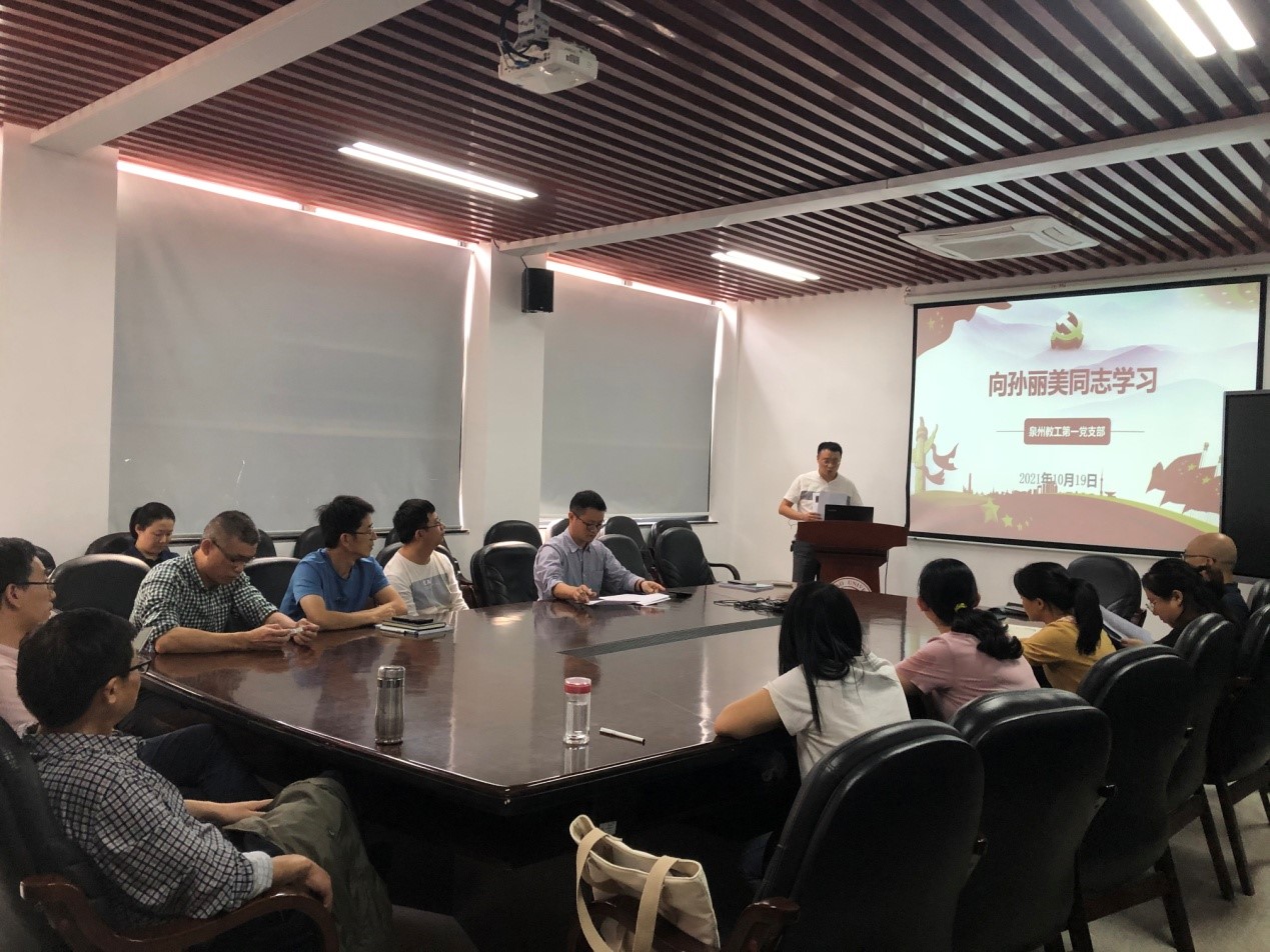 泉州教工第一党支部在数学楼311会议室开展“向孙丽美同志学习 做新时代共产党人”主题党日活动,党支部书记肖占魁主持会议。