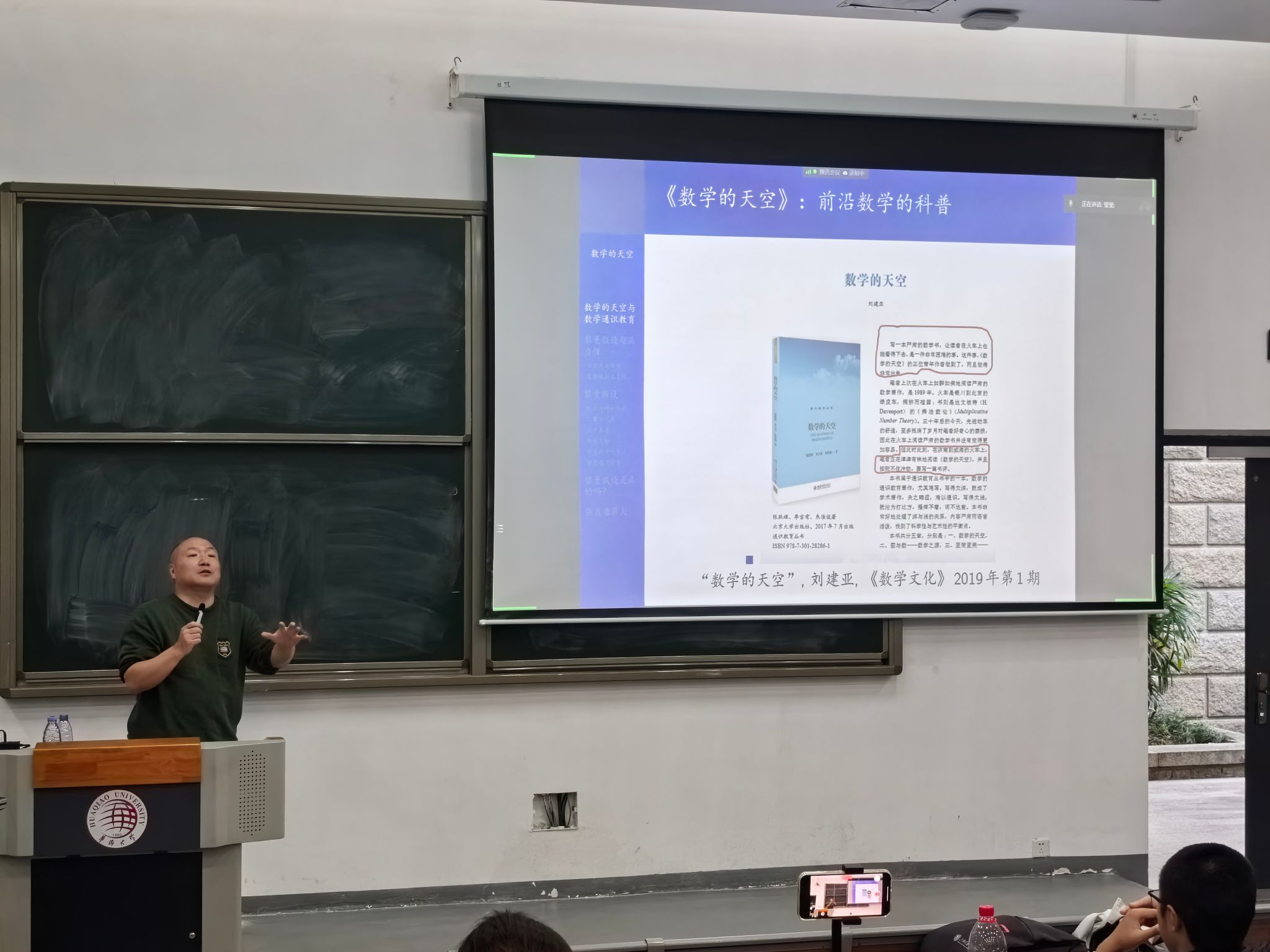 “数学文化讲坛”,在数学楼梯形教室为师生做了题为“《数学的天空》之黎曼假设”的学术报告。副院长汤龙坤担任主持人, 150余名数学专业师生听取了报告。