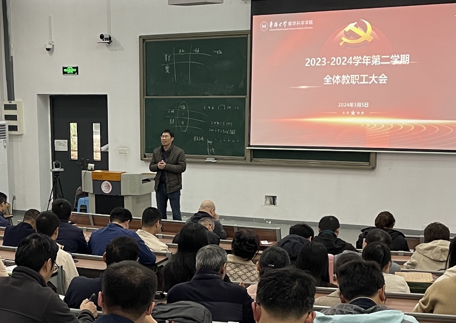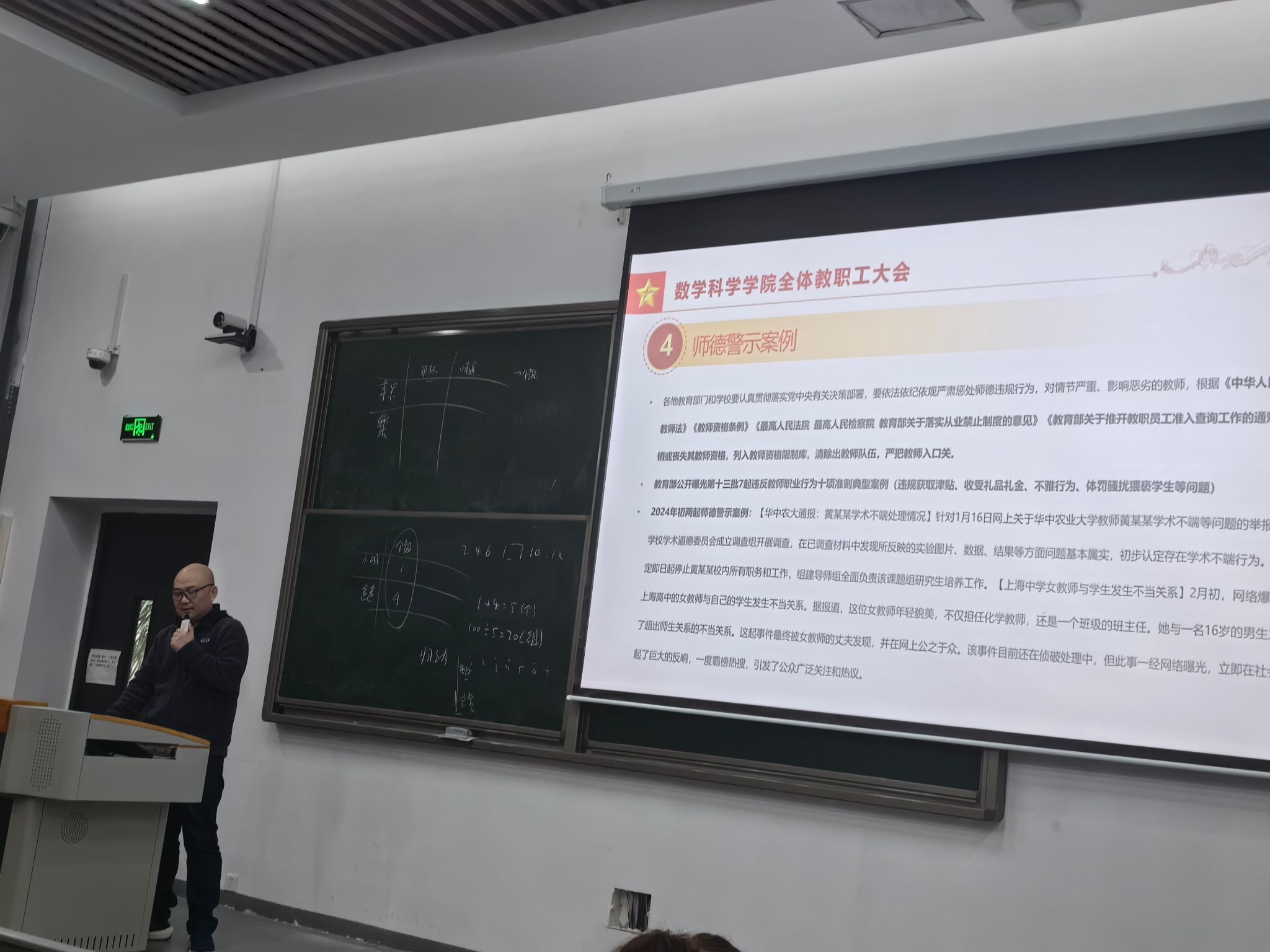 在数学楼梯形教室召开师德师风工作会议。会议由学院党委书记陈英文主持,全院教职工参加会议。
