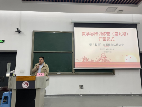 随后,在数学思维训练营(第九期)开营仪式上,王雷老师表示,数学思维训练营作为学院的党建与志愿服务的品牌服务,从2019年至今,始终坚持数学文化传播、志愿服务和专业学习的有机结合,为广大同学提供了丰富的数学学习和志愿服务体验。他总结并肯定了我院青年志愿者的成绩,同时向广大青年志愿者发出倡议,号召全体青年继续发扬雷锋精神,将其融入志愿服务中,深入开展数学思维训练营的志愿服务,以更加饱满热情,更加专业的态度来为大家提供优质的志愿服务。