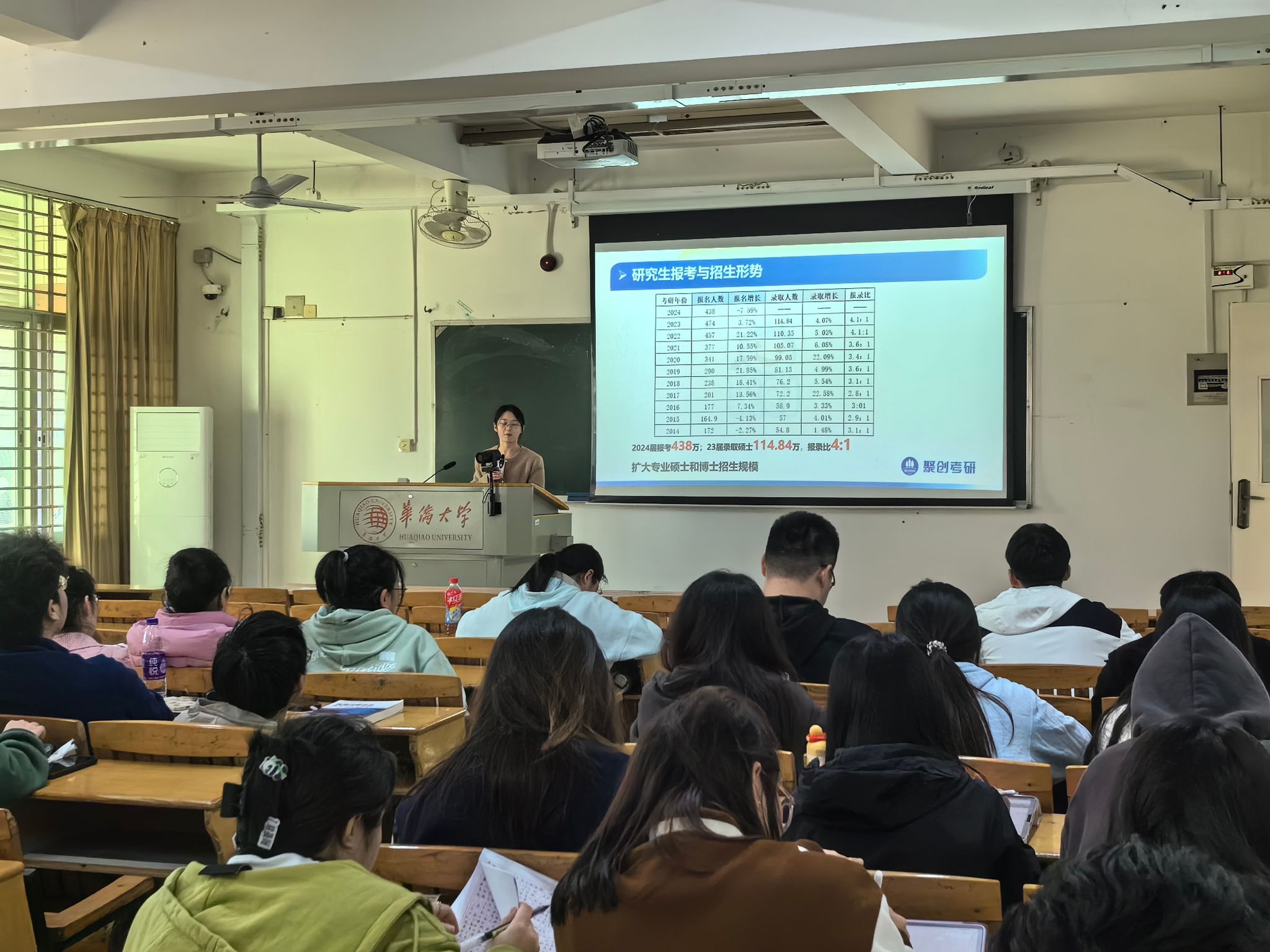 动员会结束后,特邀聚创集团考研研究院副院长张婷,为同学们带来了一场精彩的讲座,主题为“2024年考研形势与报考指南分析”。张副院长详细分析了2023年考研形势的变化,指出了未来几年考研的趋势和变化。她还根据成人社区