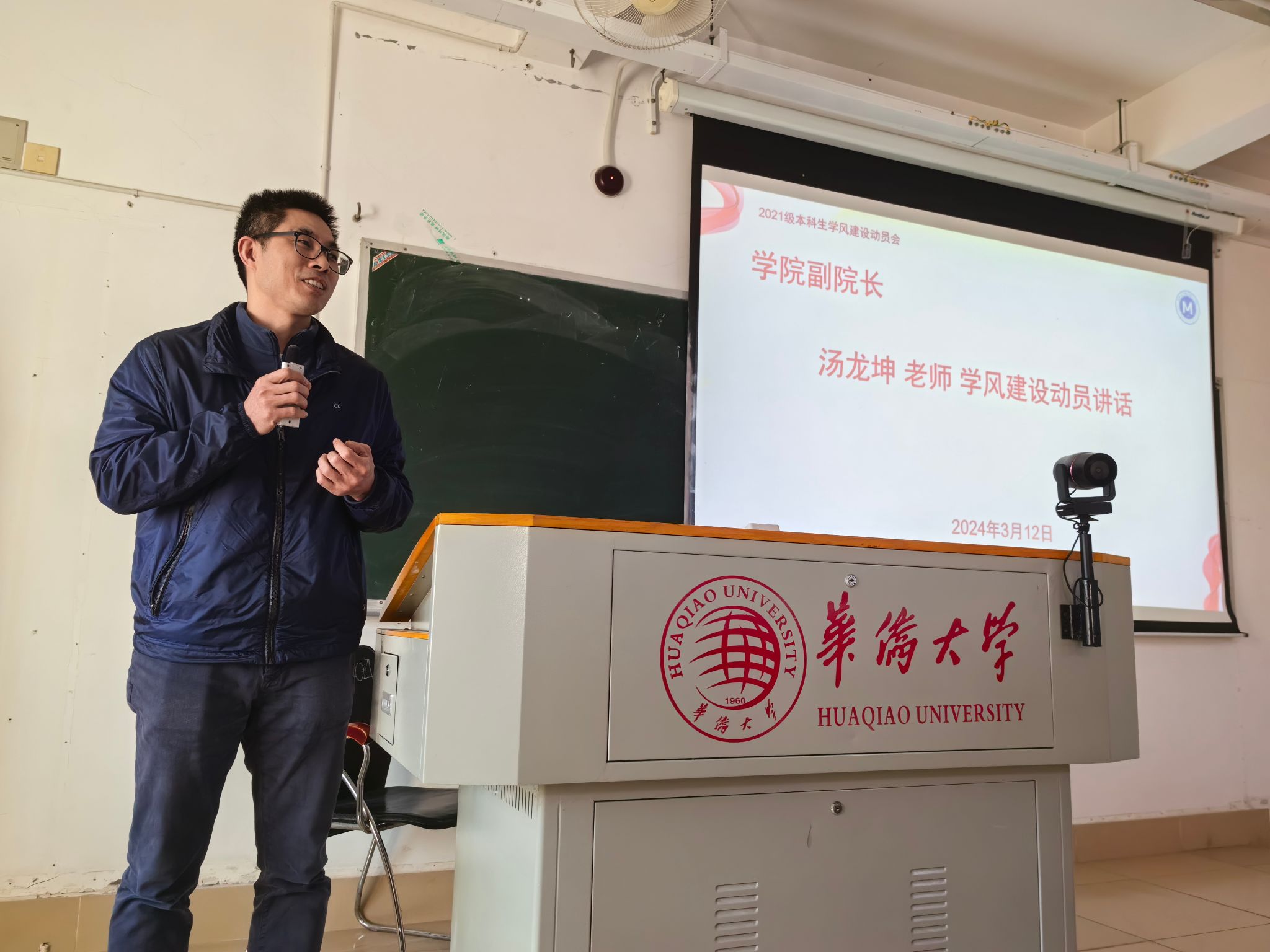 在经管楼404召开了2021级本科生学风建设动员会。此次动员会旨在进一步加强学风建设,激发学生的学习热情,为同学们的未来学术道路和考研准备提供指导和帮助。学院党委书记陈英文、副院长汤龙坤、班主任陈斌以及辅导员王雷分别作了动员讲话。