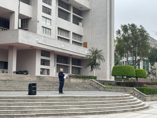 升旗仪式结束后,陈英文老师发表了热情洋溢的讲话。他表示,2024年政府工作报告提到大力发展数字教育,作为成人社区