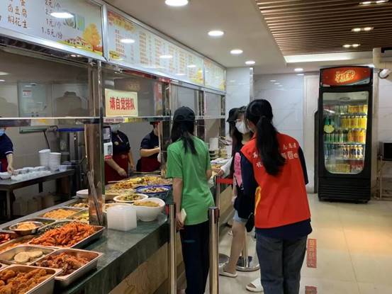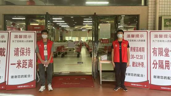 志愿服务是奉献社会、服务他人的一种方式,同时也是感受社会关怀、获得社会认同的一种途径。志愿服务既是“助人”,亦是“自助”;既“乐人”,也“乐己”。志愿者通过引导学生有序地进入封闭场所并保持间距,以及出示就餐券错峰就餐。