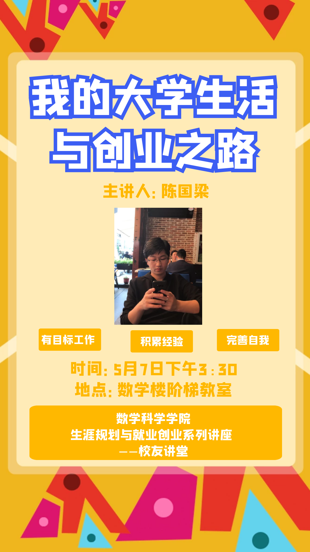 校友讲堂,在数梯教室与学弟、学妹们分享其大学生活与就业创业的心路历程,大家一起度过了一个愉快且充实的周末下午时光。