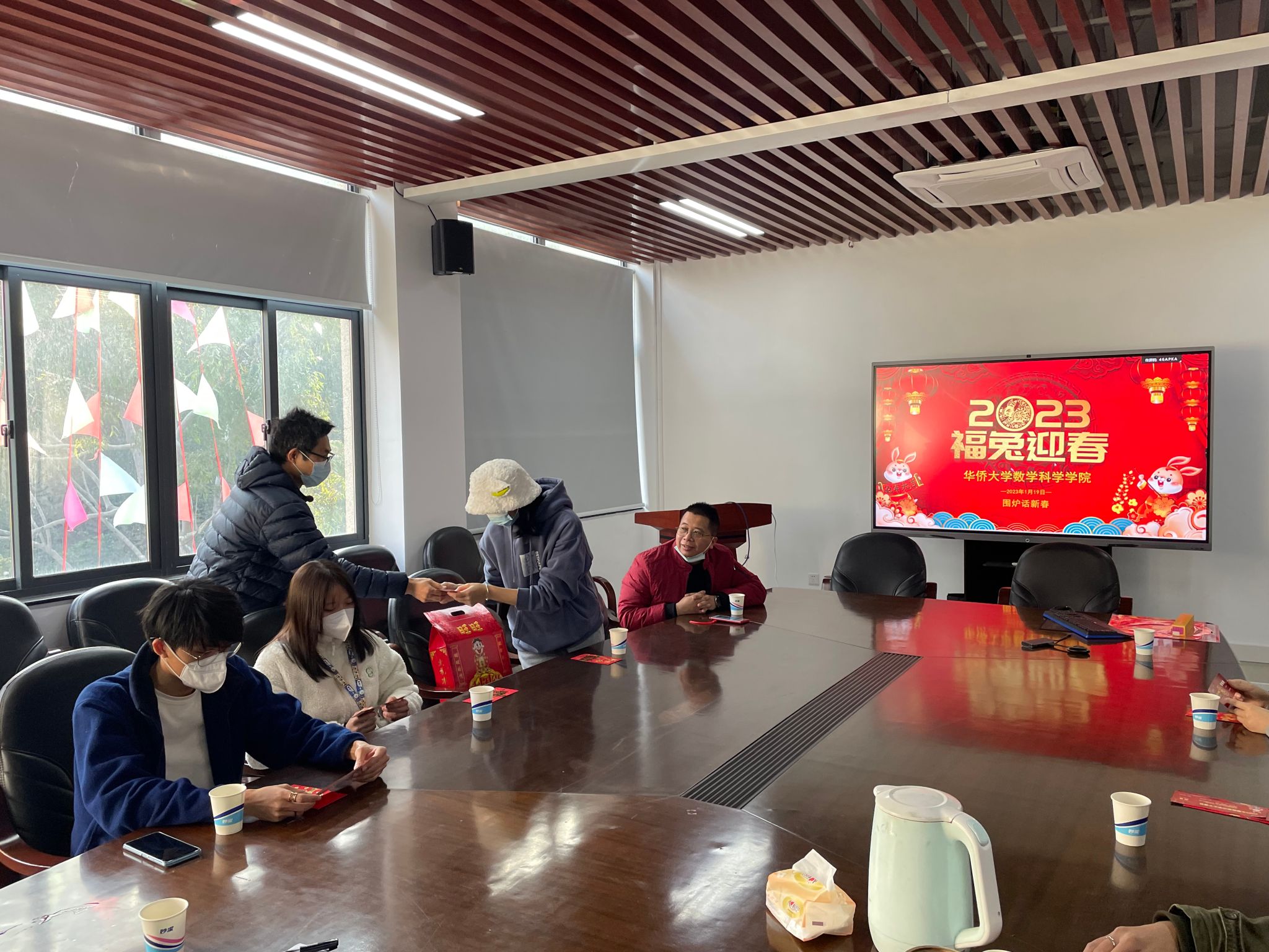 为更好关心寒假留校学生,让同学们在异乡也能度过一个平安祥和的春节,1月19日下午,我院在数学楼311会议室开展“围炉话新春”2023年寒假留校学生座谈会。学院党委书记陈英文,副院长汤龙坤,团委书记王雷,辅导员陈舜敏及留校学生参加,座谈会由陈英文主持。
