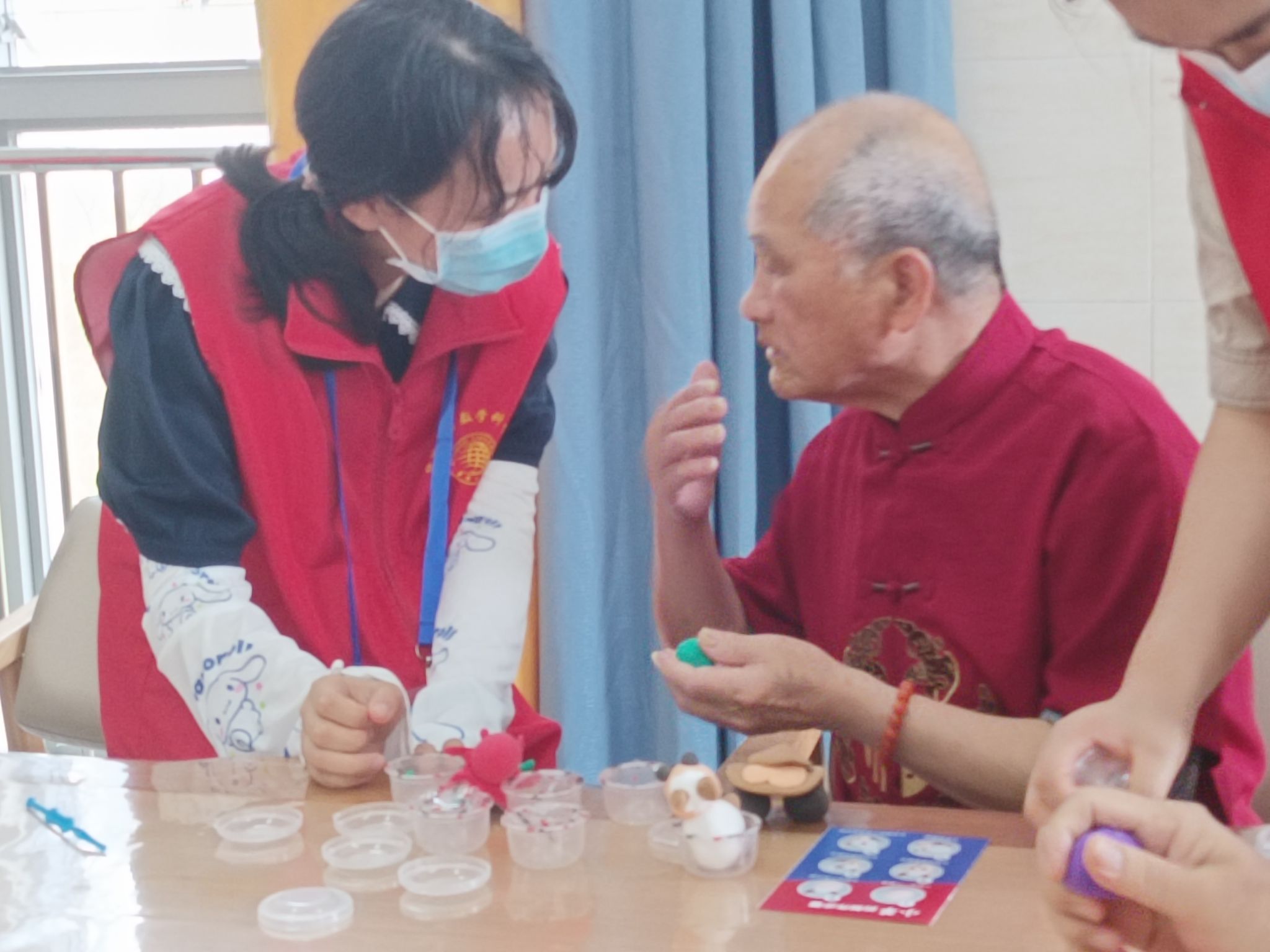 的击鼓文化带到北斗星。同时,志愿者们前往城东社区养老服务站,教老人做预防老年痴呆的手指操,陪伴老人一起做黏土手工,老人们捏了花朵小动物等等,气氛十分放松欢乐。接着,志愿者带领老人们玩了许多数字游戏,带领老人们做广播体操,活动筋骨。