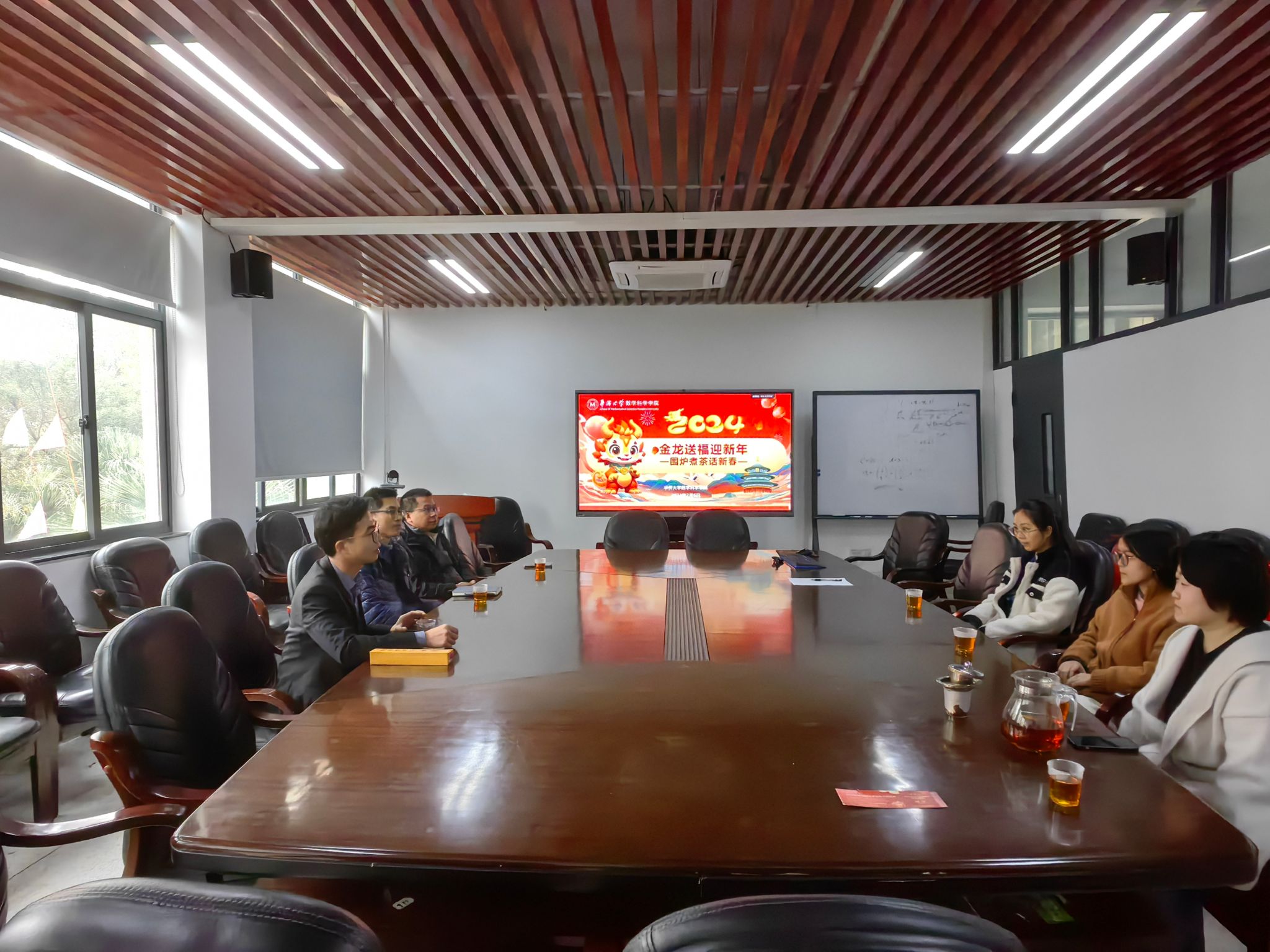 为了让寒假留校学生度过一个欢乐、祥和的节日,2月6日下午,我院在数学楼311会议室开展“金龙送福迎新年,围炉煮茶话新春”2024年寒假留校学生座谈会。学院副院长汤龙坤,团委书记王雷,辅导员陈舜敏及留校学生参加,座谈会由汤龙坤主持。