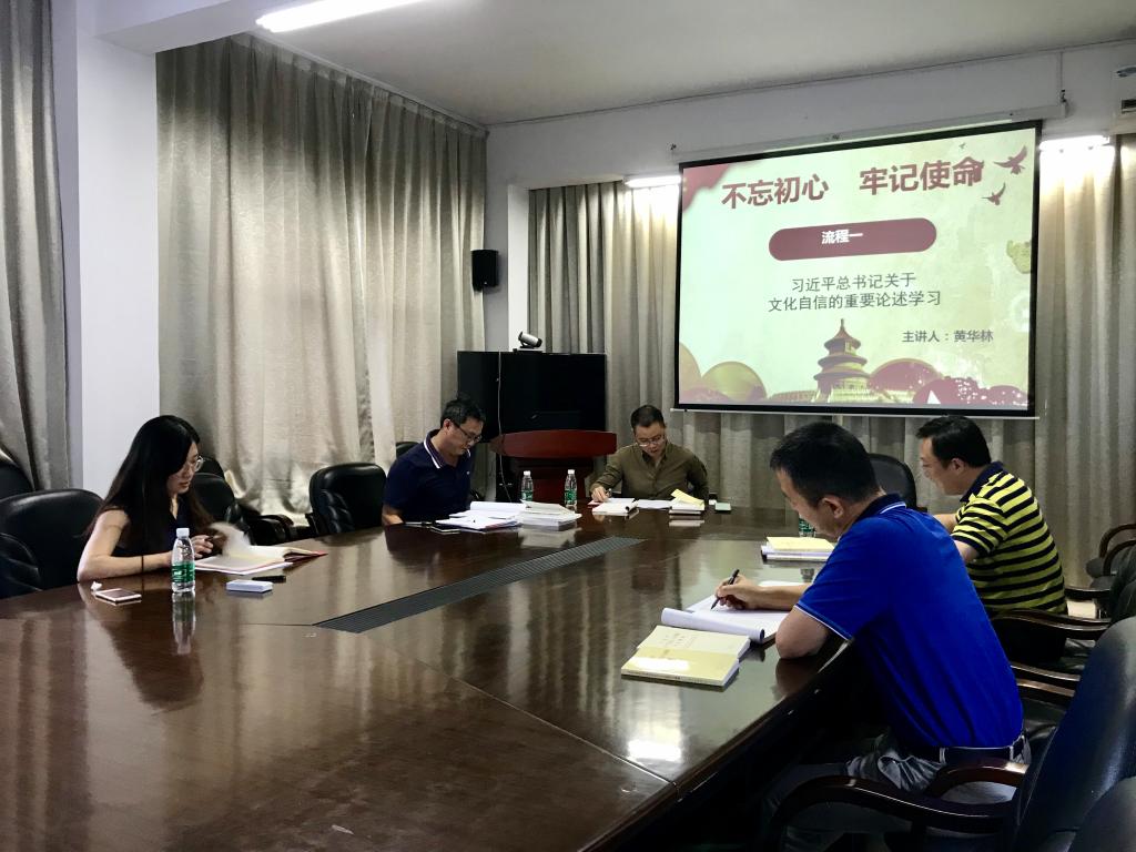 党委在学院331会议室开展“不忘初心、牢记使命”主题教育第二次集中学习研讨,重点围绕习近平总书记关于文化自信的重要论述等内容进行学习研讨。会议由黄华林院长主讲,学院领导班子成员参加学习研讨会。