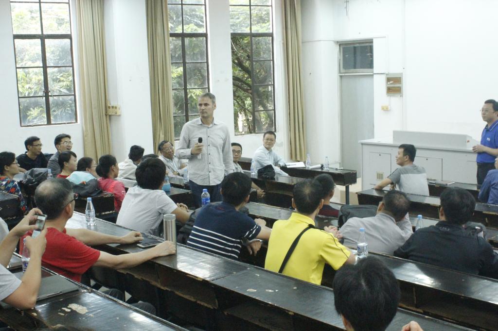 会议初,林书记介绍了学院近期的人事调动、成立动力系统研究中心以及申请省级重点实验室等重大事项。另外,围绕学院发展目标,结合学院发展现状,他提出要树立以生为本的理念,从师生的实际困难出发,培养人才,服务社会,努力构建和谐的学院氛围。接下来,陈行堤副院长肯定了过去一学期学院的科研成果,并强调教职工们下一步努力加强团队建设和国际交流。之后,黄建新副院长发言,对新学期的教学工作提出了具体建议,同时从生源情况、第一志愿率、毕业生考研人数等方面总结出数学专业的重要性,希望全体教职工更加严格地要求自己。随后,黄华林院长回顾了过去的教学情况,建议打破常规式教学,鼓励创新,积极引导学生在未来找到合适的发展方向,他相信,未来学院必将实现更好、更快、品质更高的发展。